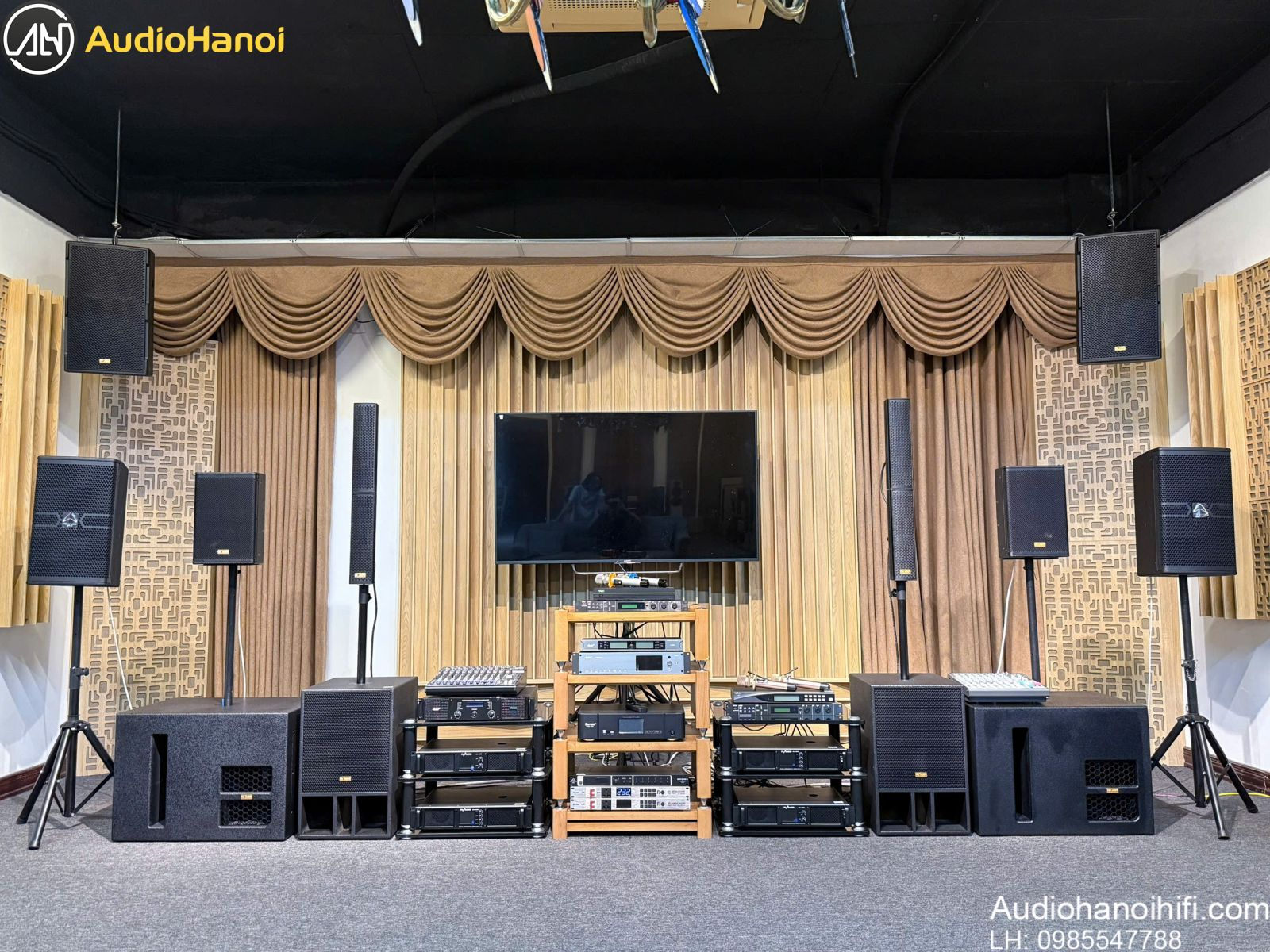 • Thiết kế hiện đại (loa cột nhỏ gọn, mixer vỏ kim loại, micro vỏ nhôm bền) và tính năng tiên tiến (DSP, Bluetooth, UHF) đáp ứng karaoke gia đình, quán nhỏ, sự kiện. Chọn Audio Hà Nội là quyết định tối ưu để đầu tư hệ thống âm thanh chất lượng, nâng tầm trải nghiệm ca hát, với sự uy tín hàng đầu hiện nay.